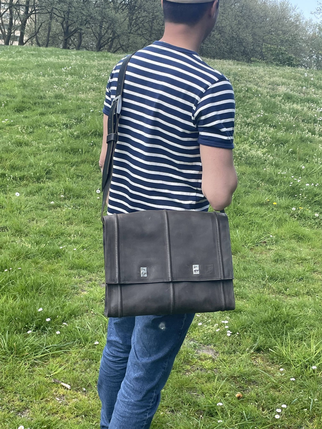 Das Modell Cascata ist eine große, über die Schulter zu tragende Aktentasche aus hochwertigem Nubukleder vom Kalb, Rindleder oder Fettleder. Die Tasche ist in verschiedenen Farben erhältlich und verfügt über einen nicht unterteilten Innenraum mit Kunststofffutter sowie zwei Innentaschen mit Reißverschluss. Auf der Verschlussklappe ist das Logo von Emmanuel Dumas blind eingeprägt.